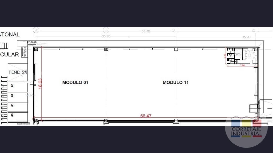 Total: 1054,85 m2 | Bodega: 1.023,55 m2 | Oficina: 31,3 m2
