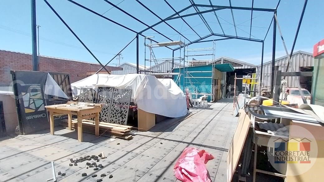 El galpón cuenta con una reja de acceso que garantiza seguridad y privacidad. En su interior, se encuentra un local comercial, ideal para actividades de atención al público o exhibición de productos. El patio, con un contenedor habilitado como bodega u oficina en el segundo piso, maximiza el espacio disponible y ofrece soluciones de almacenamiento y trabajo adicionales.